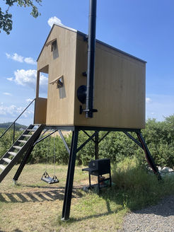 zázemí nové jurty, rozlehlá zahrada, bazének, sauna, kuchyň, toalety, sprchy = přístup k nim je z jurty nekrytý, je třeba k nim dojít pár metrů pod širým nebem i v dešti, viz galerie dole